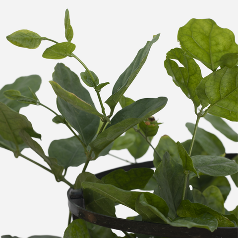 Mogra Jasmine is a lush climbing plant with highly aromatic white blooms that open in the evening. Whether placed on your balcony, garden, or front porch, this plant is a favorite for its sweet scent and cultural charm.