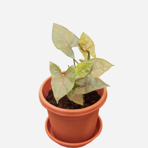 With soft pink arrow-shaped leaves, Syngonium 'Neon Robusta' brings a fresh, delicate tone to your space. It’s the plant version of a mood light — calming, pretty, and low effort. It’s great for shelves, hanging pots, or as a trailing beauty with time.